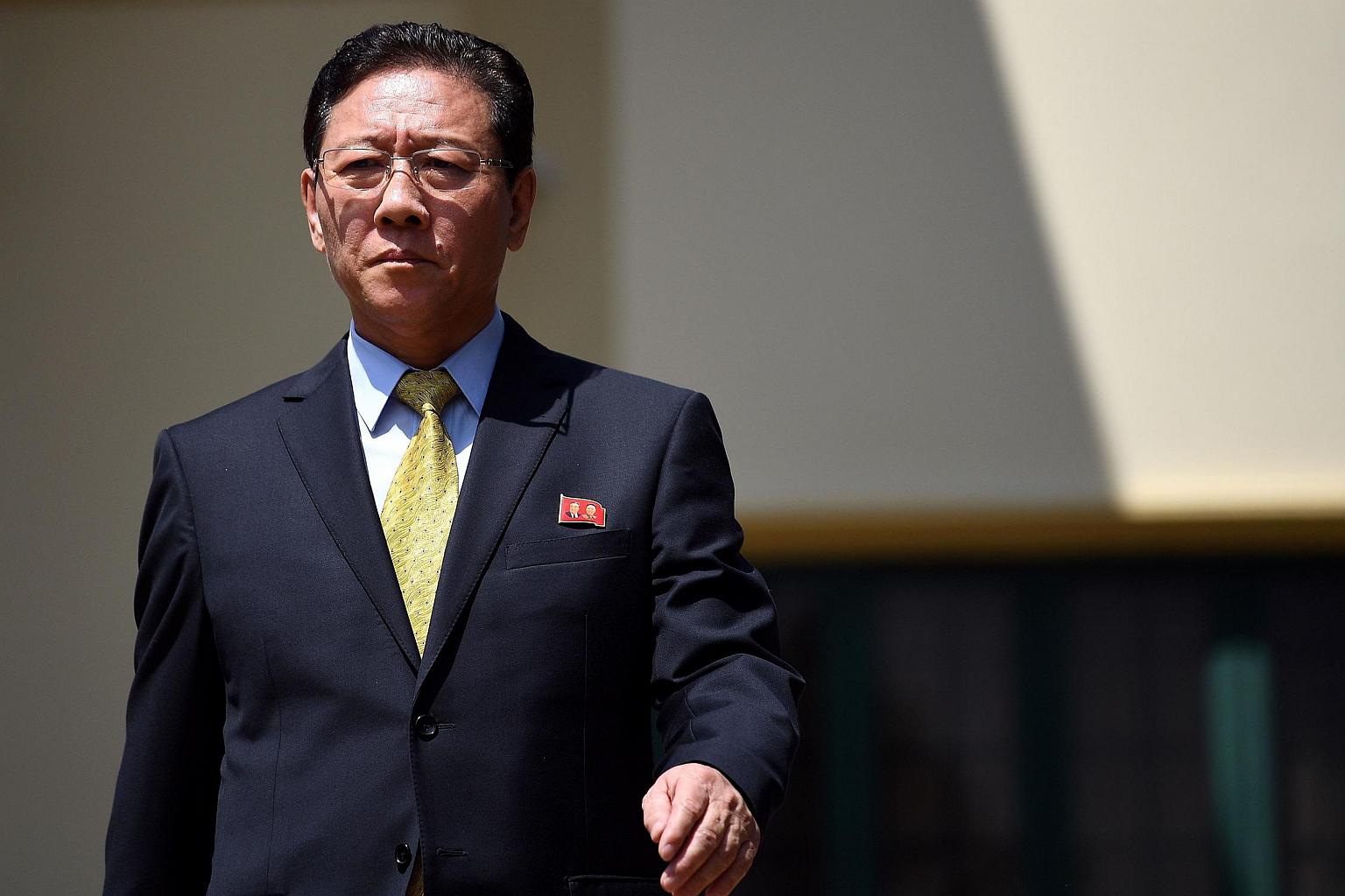Kang Chol, North Korea's ambassador to Malaysia, walks to address journalists outside the North Korean Embassy in Kuala Lumpur on Feb 20, 2017.
