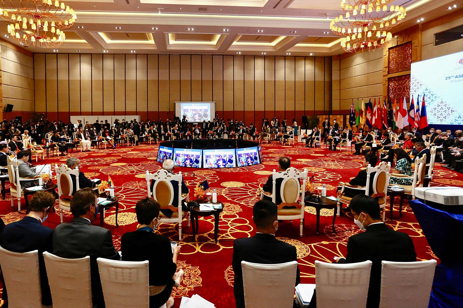 Officials attending the 29th Asean Regional Forum in Phnom Penh on Aug 5, 2022.