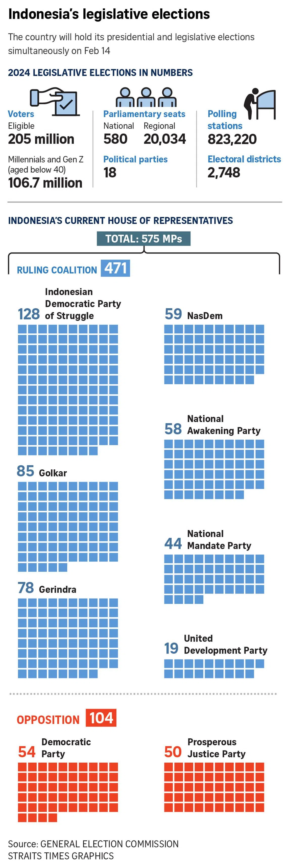 JAKARTA – On Feb 14, Indonesians will head to the polls to choose not just their president, but also their elected representatives for Parliament, the regional council and legislative councils. Here is all you need to know about the legislative elections.