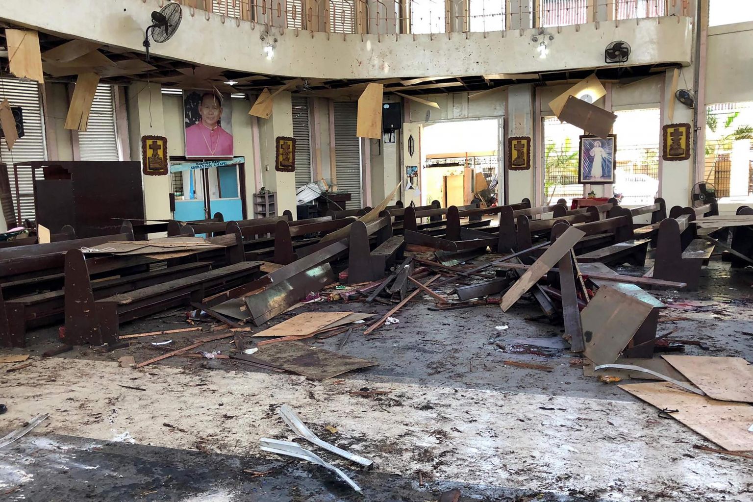 Debris inside a Catholic church where two bombs exploded in Jolo, Sulu province, on the southern island of Mindanao on Jan 27, 2019.
