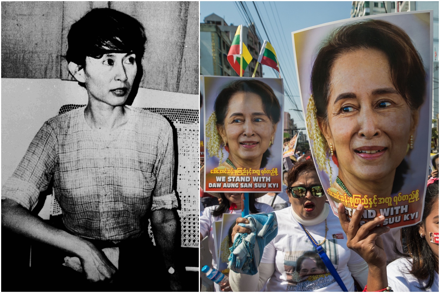 1988: She studies and works overseas for more than 20 years before returning to Myanmar to care for her dying mother and is swept up in nationwide protests against decades of military rule.