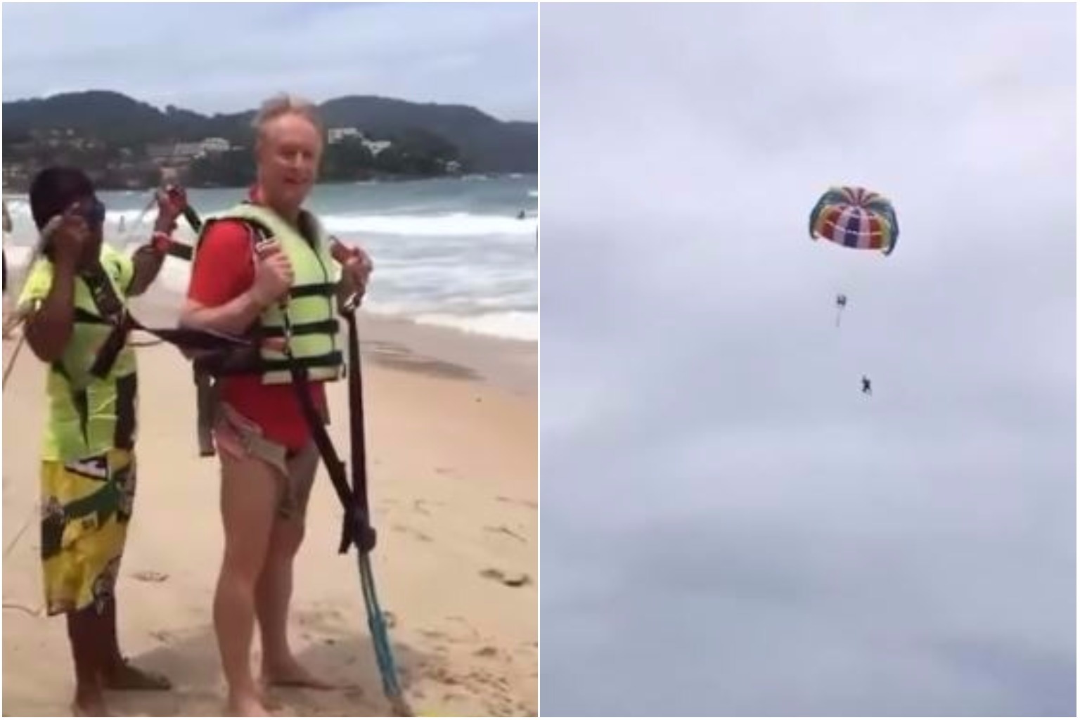 Australian businessman Roger Hussey fell while parasailing after accidentally pulling on a hook that unstrapped his harness.