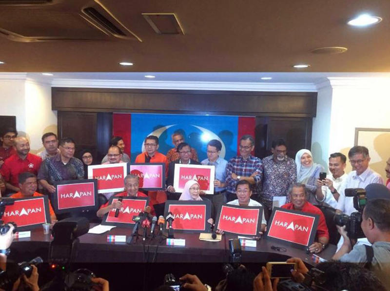 Pakatan Harapan comprises Parti Keadilan Rakyat, Parti Pribumi Bersatu Malaysia, the Democratic Action Party and Parti Amanah Negara.