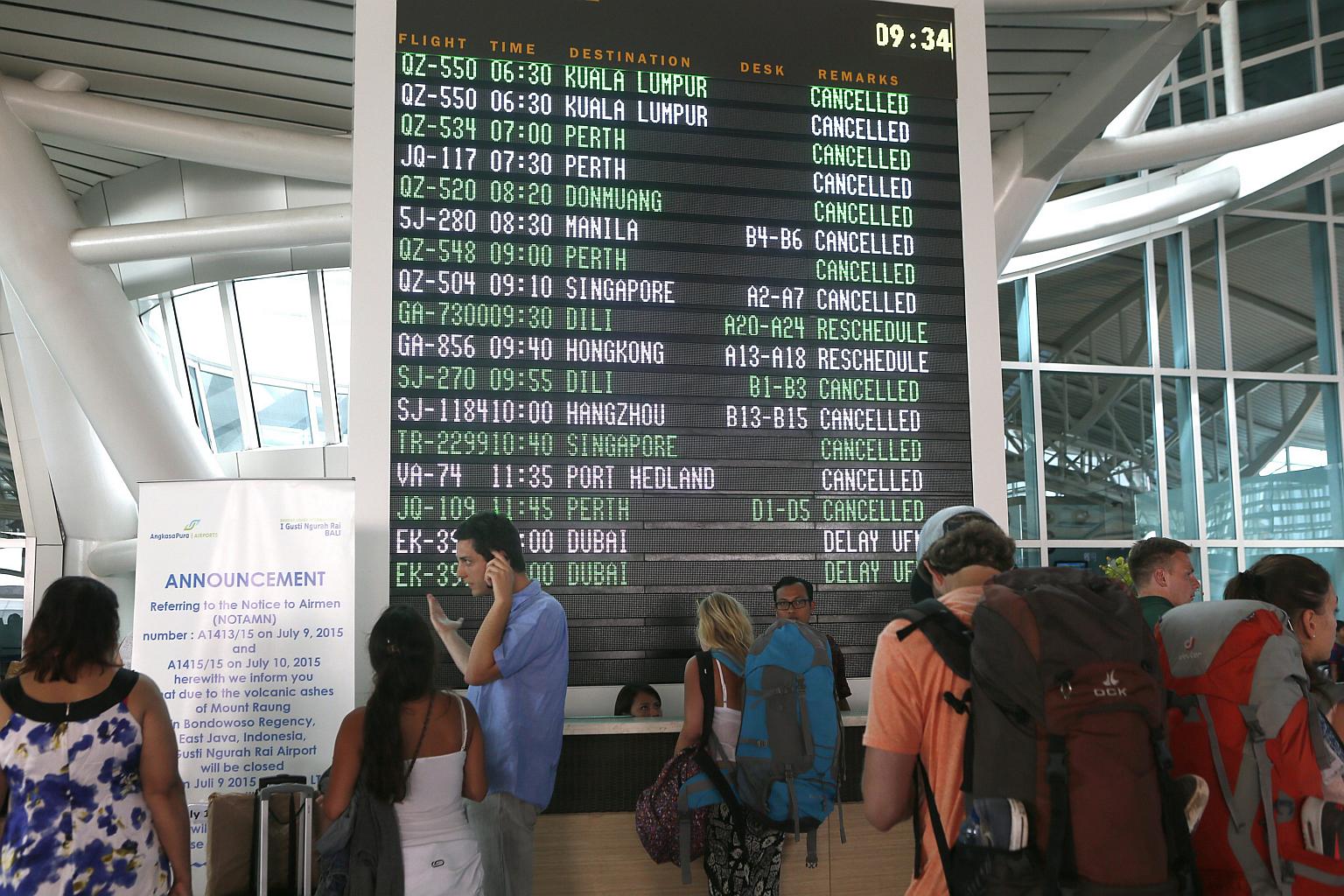 Passengers wait for their delayed flights at Bali's Ngurah Rai International Airport in Bali, Indonesia, on July 11, 2015.