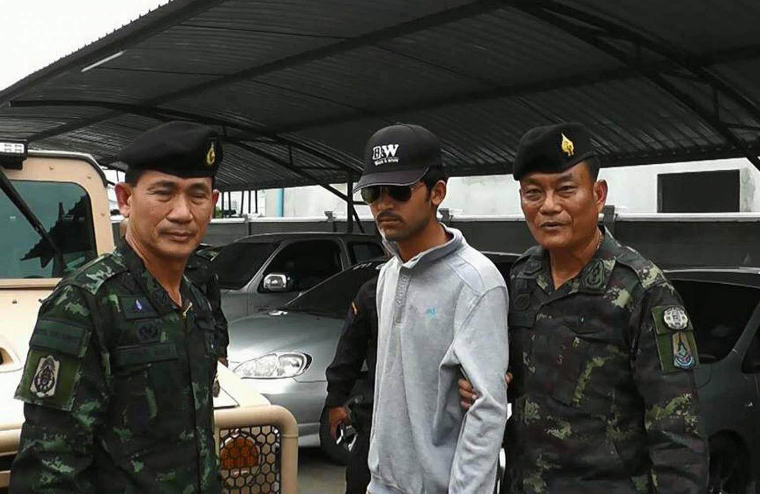 Thai police escort the Bangkok bombing suspect (centre) after he was arrested in the Aranyaprathet district of Sa Kaeo province on the Thai side of the Cambodian border on Sept 1, 2015.