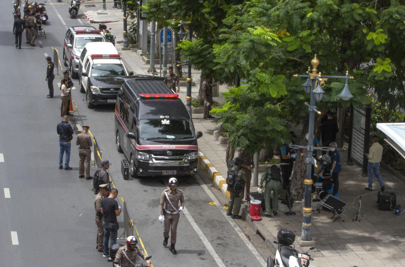 Thai investigators cordoning off an area where an explosion took place in Bangkok on Aug 2, 2019.