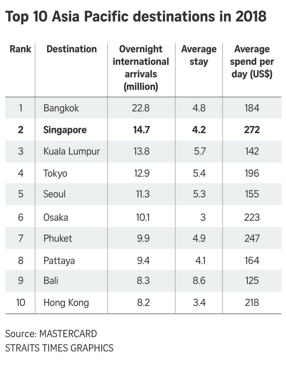 NEW YORK (AFP) - Bangkok ranked first in 2018 for the fourth straight year as the city with the most international visitors, according to an annual report by Mastercard released on Wednesday (Sept 4).