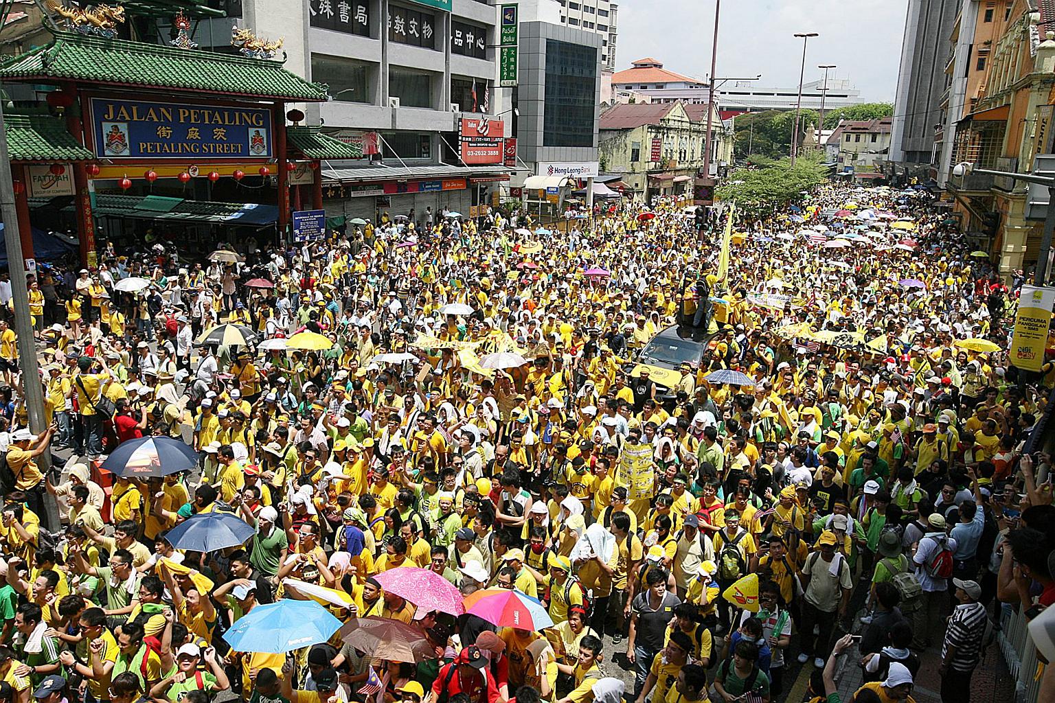 Tens of thousands of protesters marching through the streets of Kuala Lumpur during the Bersih rally on April 28, 2012.