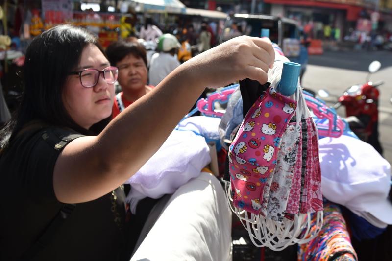 A woman chooses a cloth face mask in the Kim Yong market in Hadyai district in Thailand's southern of Songkhla province, on Jan 26, 2020.