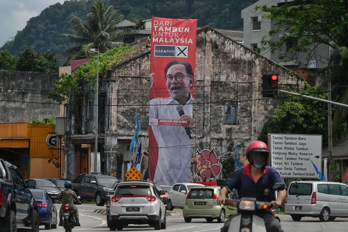 Accompanied by the words “From Tambun for Malaysia”, Mr Anwar’s larger-than-life poster played down his outsider status and promoted his campaign promise to serve not just the constituency but also the country if he became prime minister.