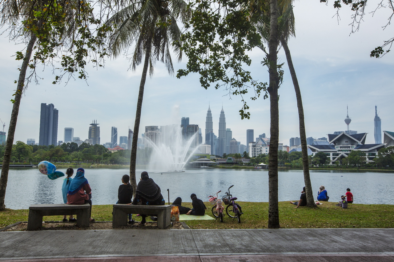Visitors visit Titiwangsa Lake in Kuala Lumpur, Malaysia, on Oct 16, 2021.