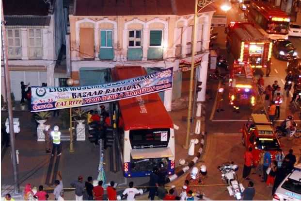 George Town police district chief Mior Faridalathrash Wahid confirmed the case, adding that the bus driver and the two passengers sustained minor injuries.