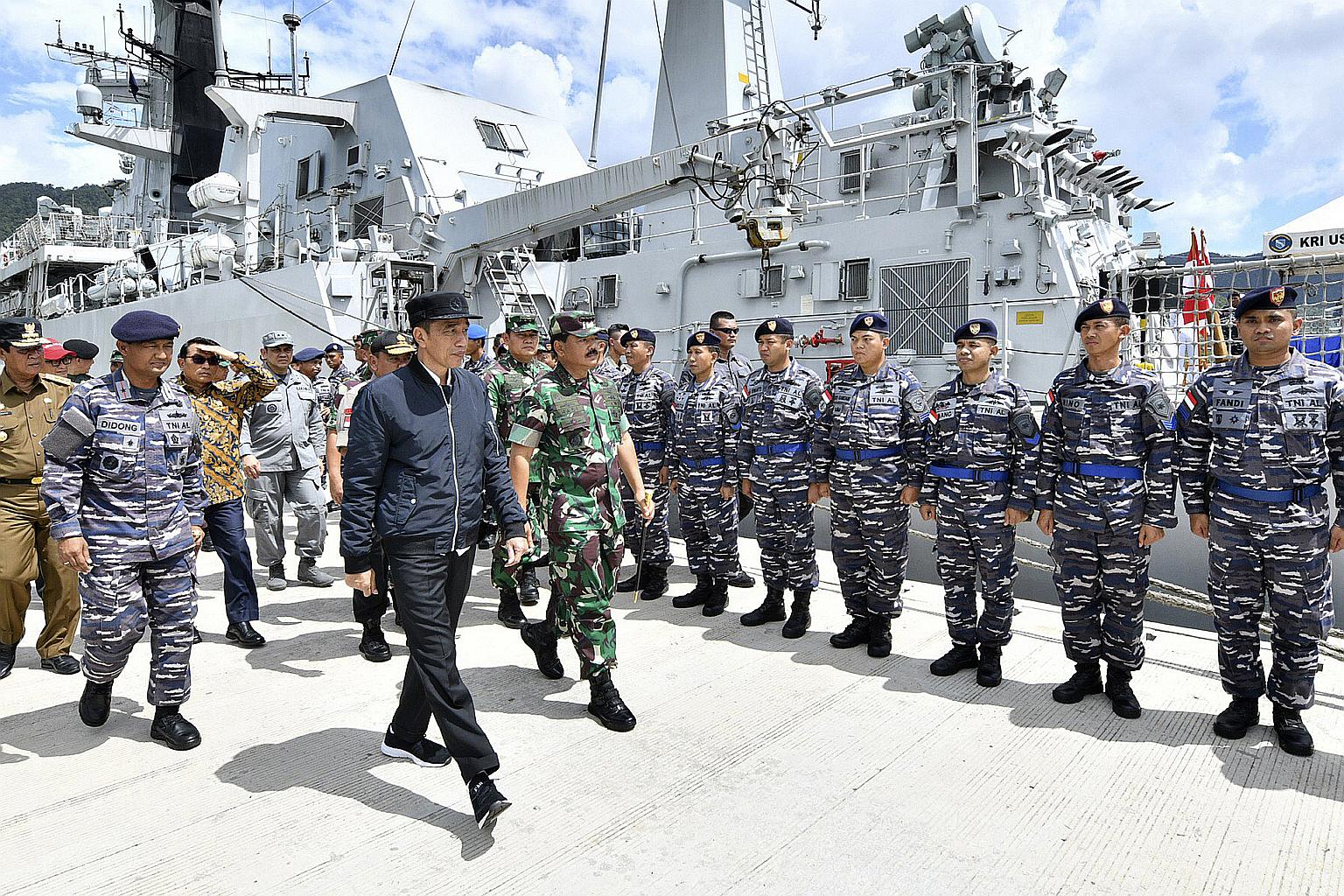 In a file photo from Jan 8, 2020, President Joko Widodo visits the Indonesian Navy ship KRI Usman Harun near the Natuna Islands.