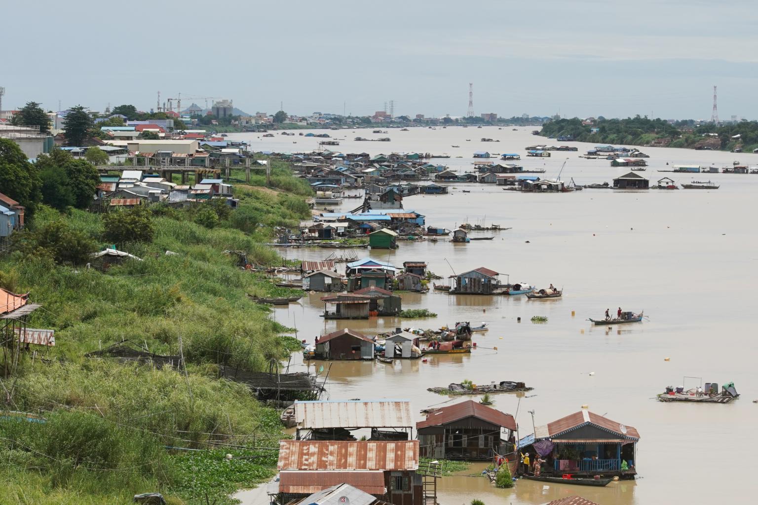 The conservationists were detained while documenting run-off into the Tonle Sap river (above) in Phnom Penh.