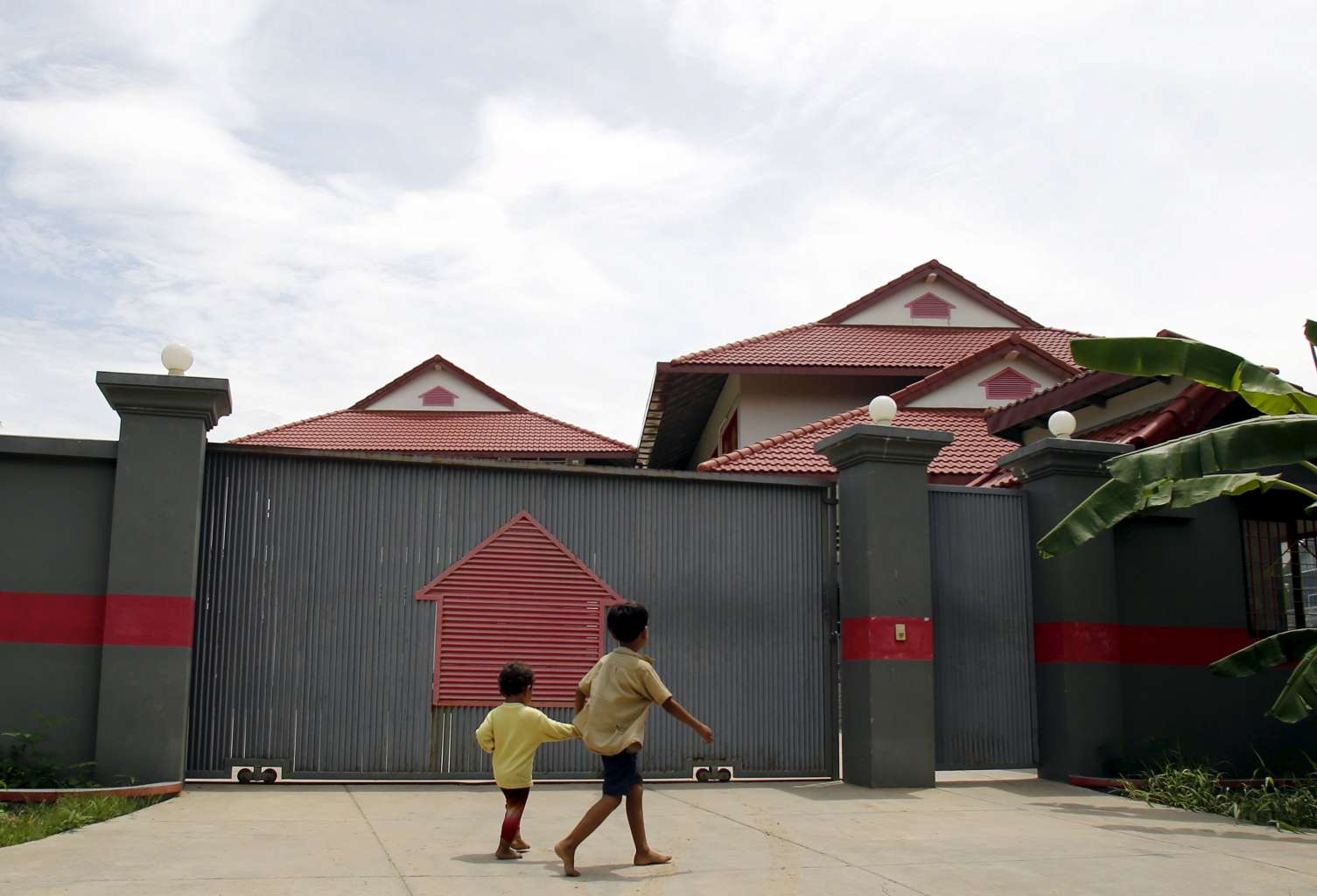 Boys walk in front of a house that is used to temporarily house asylum seekers sent from a South Pacific detention centre, in Phnom Penh, Cambodia on Aug 31, 2015.