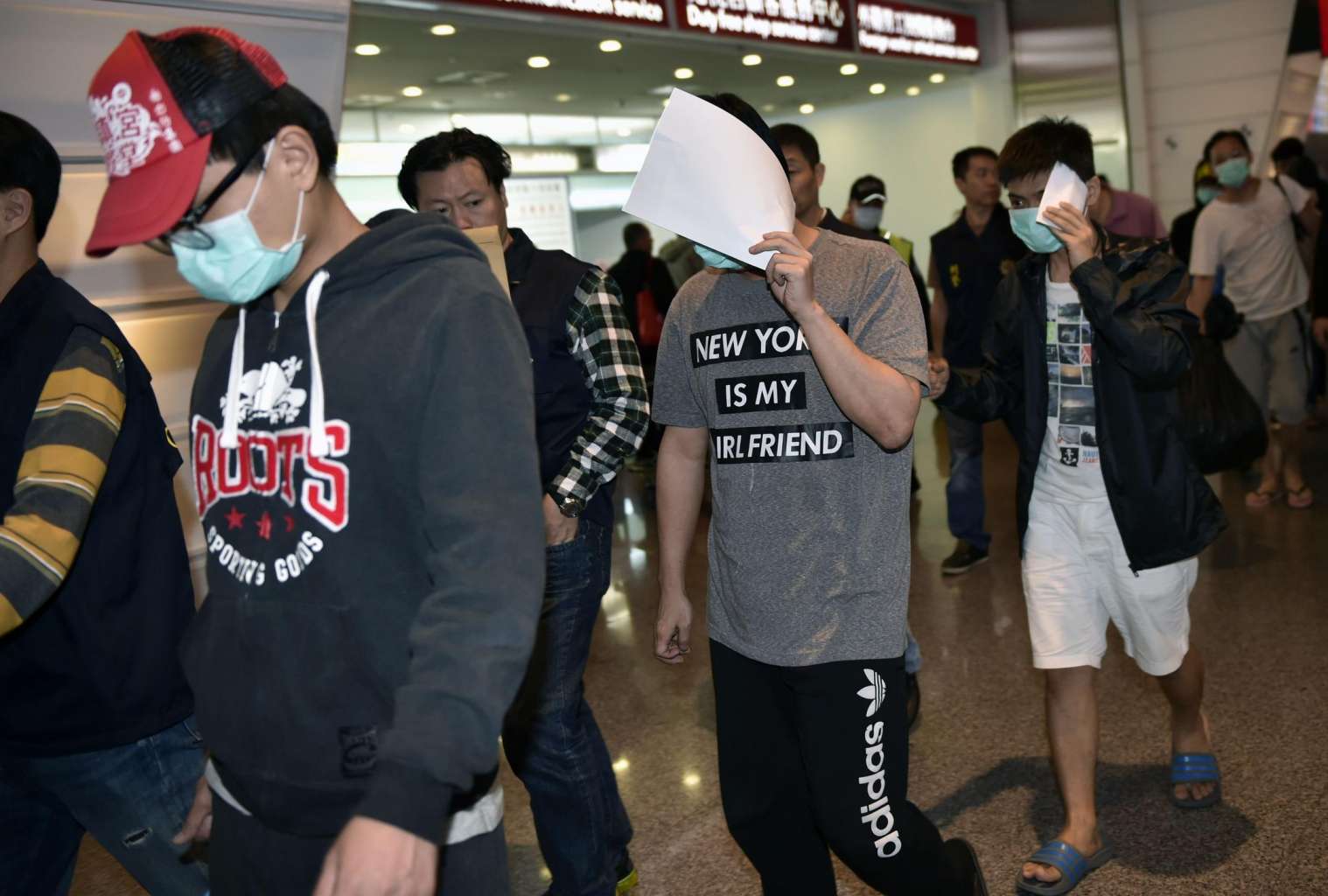 Twenty fraud suspects deported by Malaysia arriving in Taipei in April 2016. But another group of Taiwanese suspects was sent to China.