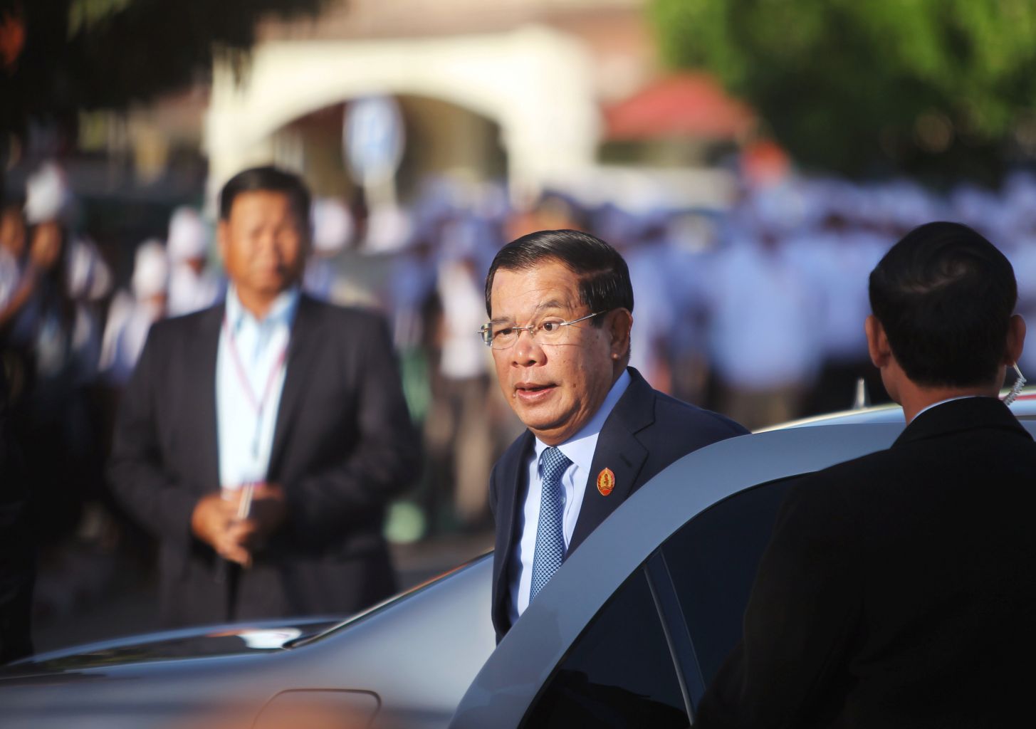 Cambodia's Prime Minister Hun Sen arrives before a ceremony to mark the 66th anniversary of the Cambodian People's Party, June 28, 2017.