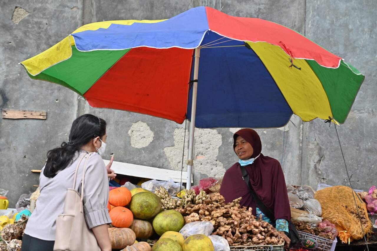 People trade at a traditional market in Jakarta on Feb 7, 2022.
