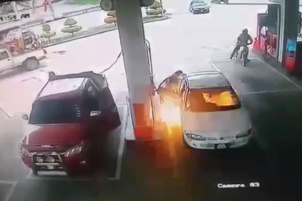Car catches fire at Malaysian petrol station after boy in vehicle plays with lighter