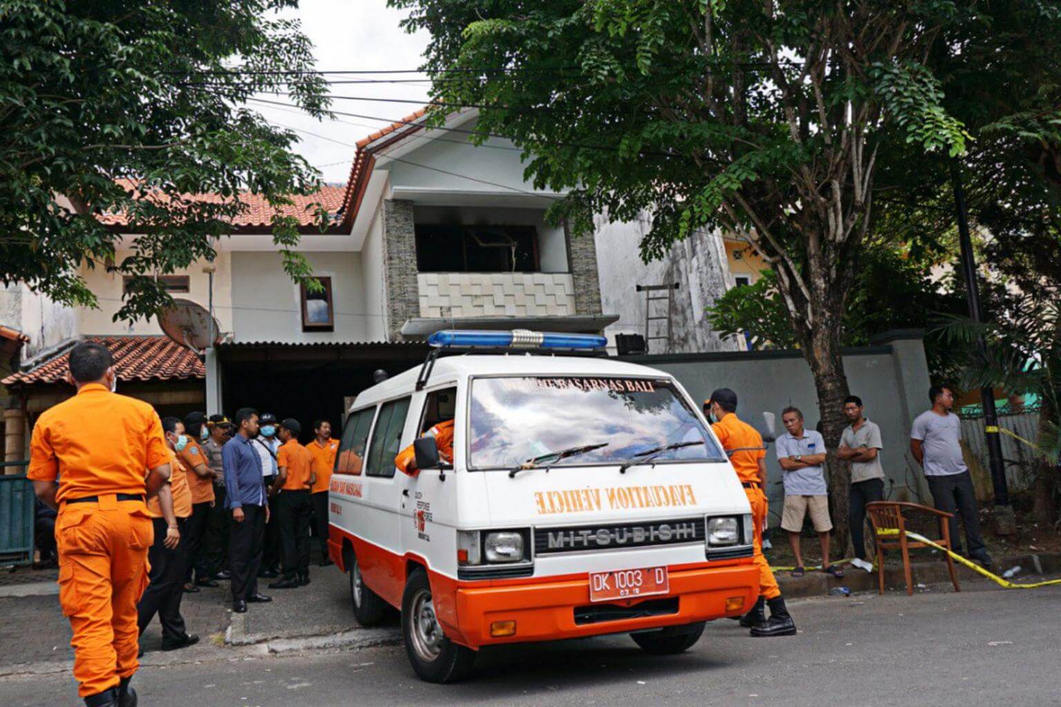 National Search and Rescue Agency personnel removing the bodies of a Japanese couple who were found burned in their house in Bali, on Sept 4, 2017.