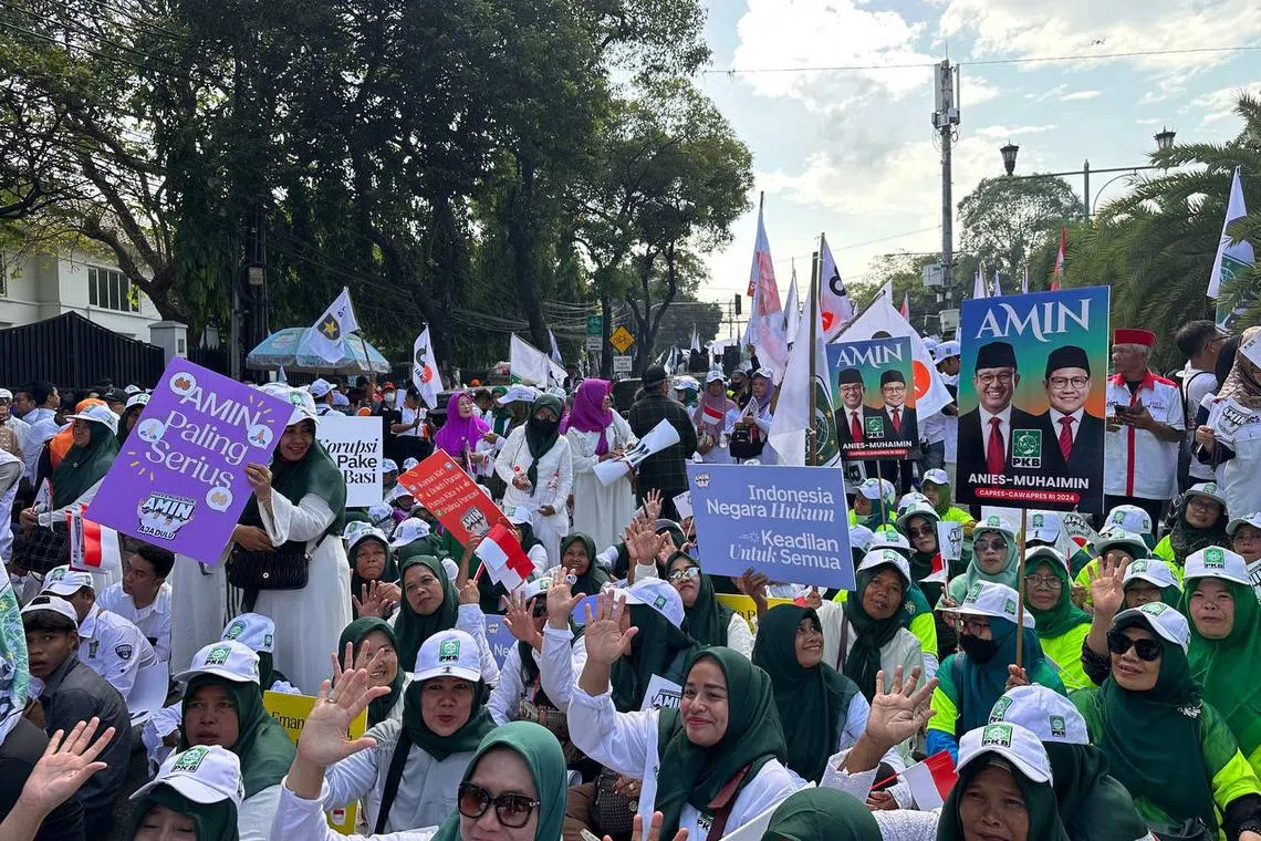 Supporters for Amin, a portmanteau that they have given the Anies and Muhaimin pair, started arriving as early as 6am outside the KPU, with some travelling as long as three hours to reach the venue.