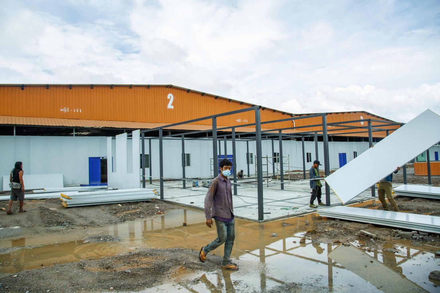 Labourers construct a Covid-19 quarantine centre with building materials from China in the border town of Muse on Sept 3, 2021.