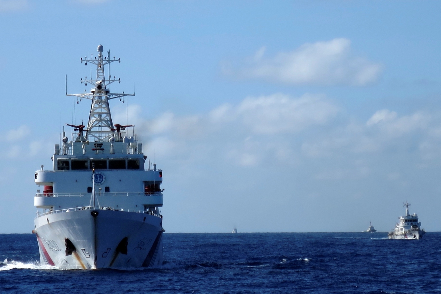 A file photo from July 15, 2014, shows Chinese coastguard ships in the South China Sea.