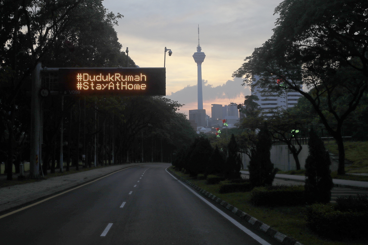 A street is seen empty in Kuala Lumpur on April 10, 2020.