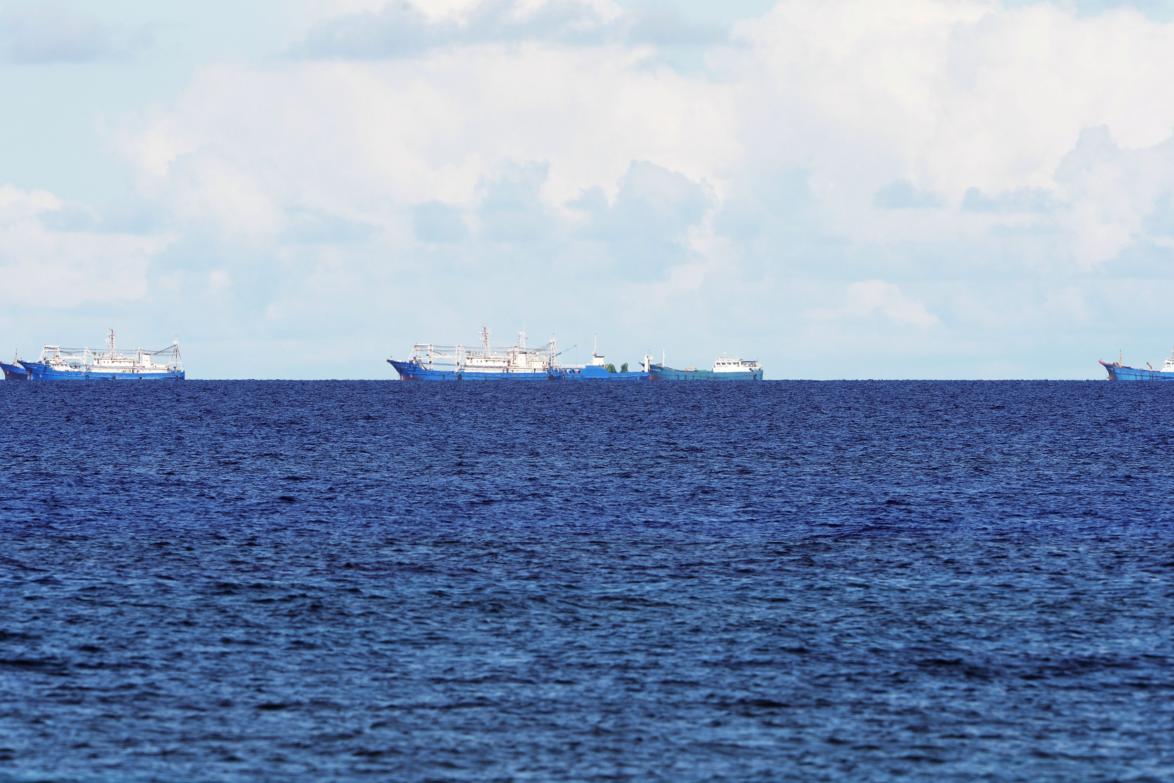 Chinese boats anchor near the reef Subi, on July 31, 2019. Tension between Hanoi and Beijing escalated when China sent the vessel to conduct seismic surveys in waters off Vietnam in early July.