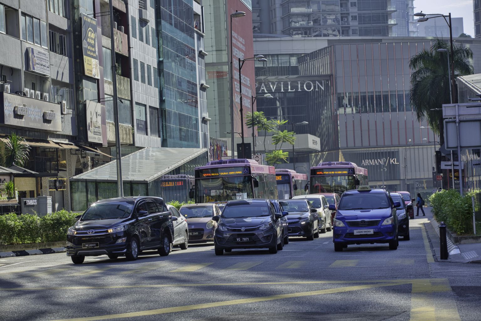 Heavy traffic filled thoroughfares into Kuala Lumpur.