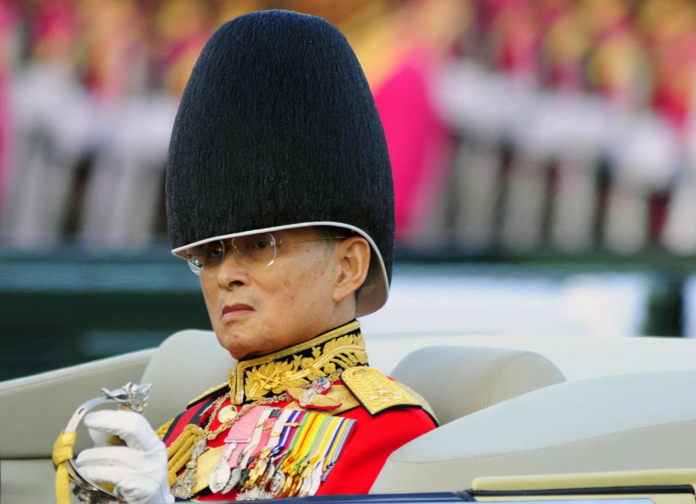Thai King Bhumibol Adulyadej is shown Dec 2, 2007, as he is driven past a military parade on the Royal Plaza in Bangkok that kicked off celebrations for his 80th birthday on Dec 5.