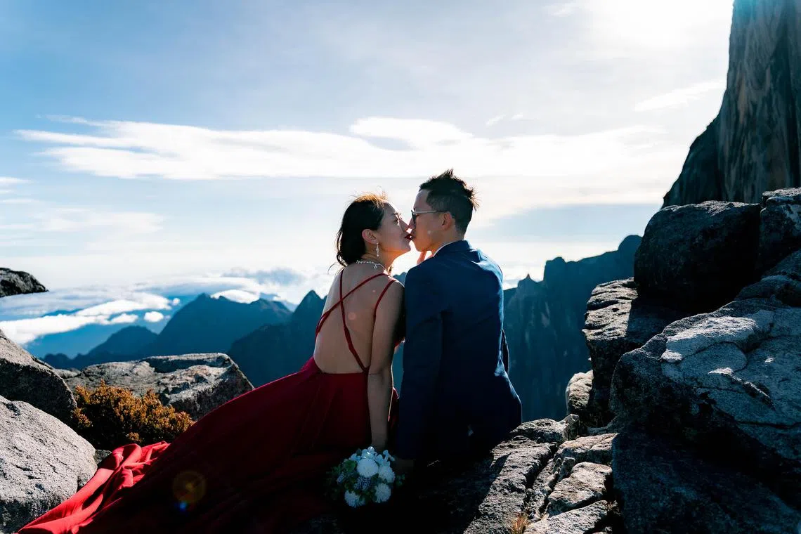 Mr Low Chee Seng and Ms Lilian Wang took their pre-wedding pictures on Mount Kinabalu.