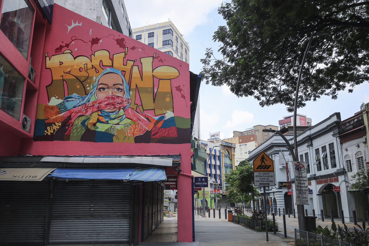 An empty street with closed shops in Kuala Lumpur, on April 2, 2020.