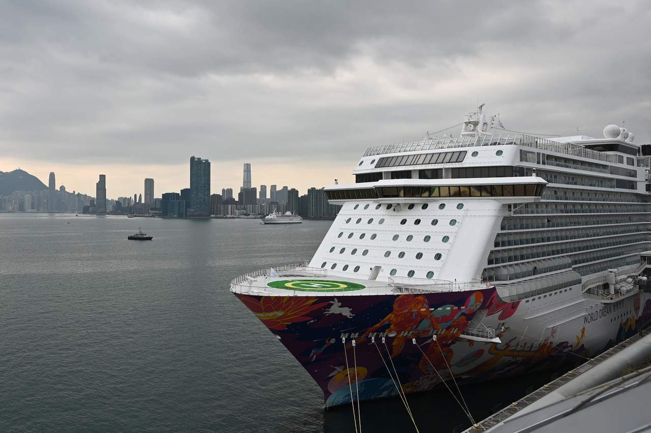 The World Dream cruise ship docked at the Kai Tak cruise terminal in Hong Kong on Feb 9, 2020. Indonesia has sent a navy ship to bring back 188 of its nationals working as crew aboard the liner.