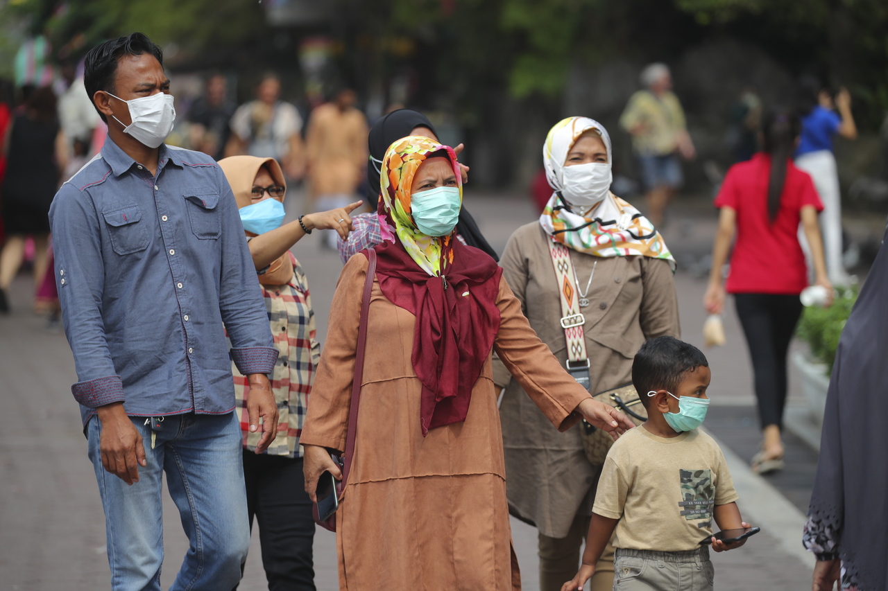 Visitors wear face masks at the major Hindu temple and tourist attraction, Batu Caves in Kuala Lumpur, Malaysia, on March 5, 2020.