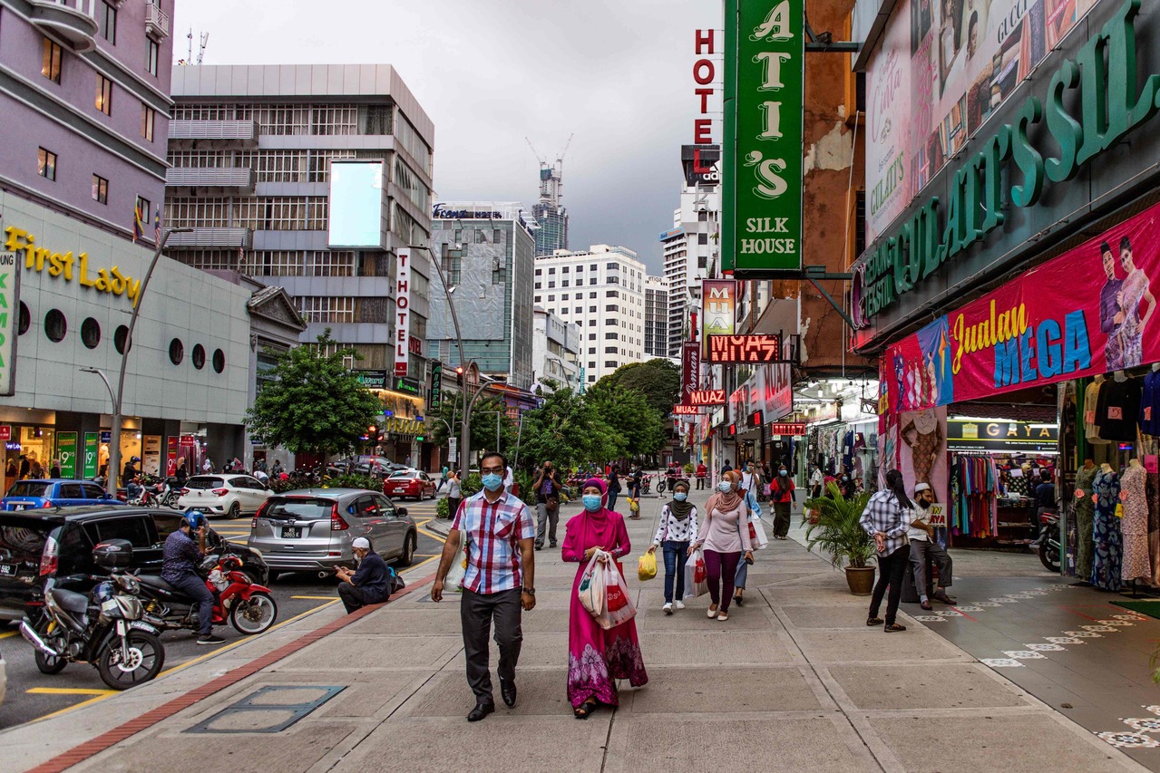 People walking along a shopping area in Kuala Lumpur on May 21, 2020.