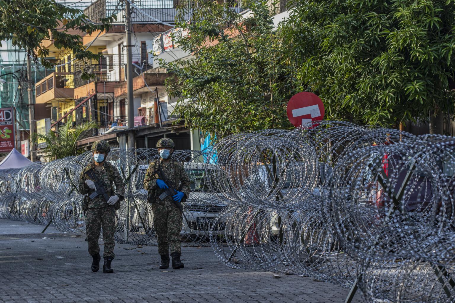 Malaysian army personnel patrol an area under lockdown in Kuala Lumpur, on April 29, 2020.