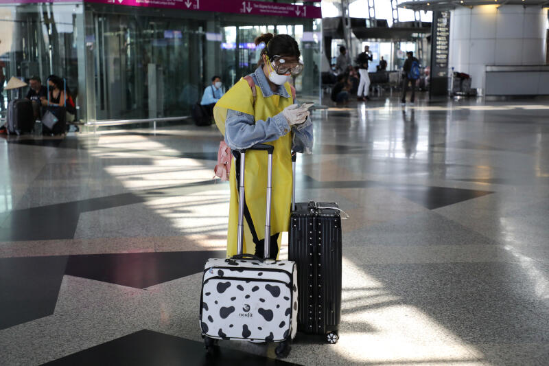 A woman arrives at Kuala Lumpur International Airport, on March 17, 2020.