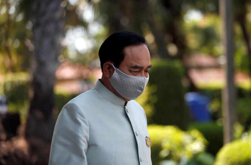 Thai Prime Minister Prayut Chan-o-cha wears a protective mask due to the coronavirus outbreak, as he comes out from a meeting at Government House in Bangkok, on March 24, 2020.