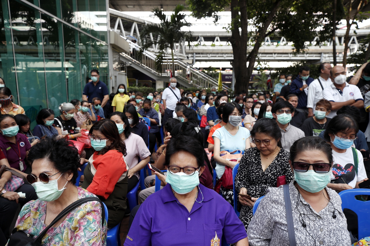 People standing in line to buy protective masks at the Government Pharmaceutical Organisation in Bangkok on Feb 6, 2020.