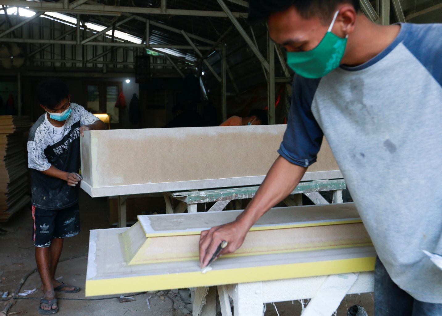 Workers prepare coffins ordered for Covid-19 victims at a workshop in South Tangerang, on the outskirts of Jakarta.