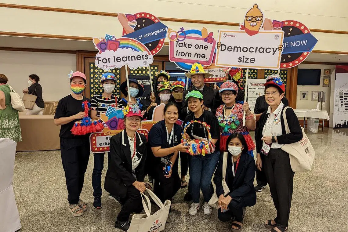 Mr Mechai Viravaidya (in yellow hat) changed the way people in Thailand perceived contraceptive use, sex education and family planning.