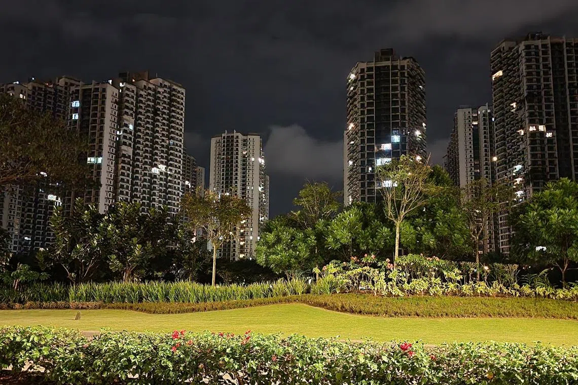 On the evening of ST’s visit to the project, only a few units in each block had lights on.