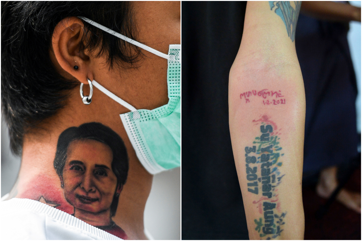 He has completed 10 Suu Kyi tattoos since the military detained the Nobel Peace Prize laureate.