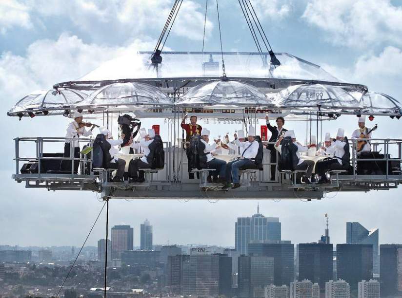 Dinner in The Sky, founded in 2006, has provided similar experiences in more than 60 countries, including those such as Concert in the Sky, Movie in the Sky, Santa in the Sky, and even Marriage in the Sky.