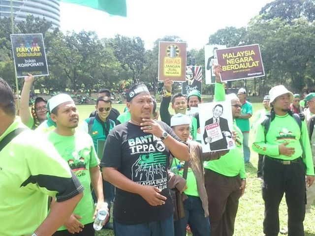 Many of the demonstrators congregated in central Kuala Lumpur were from the opposition Parti Islam SeMalaysia (PAS), which fears that the South-east Asian country could lose control of its economy if it enters the 12-nation pact with the United States.