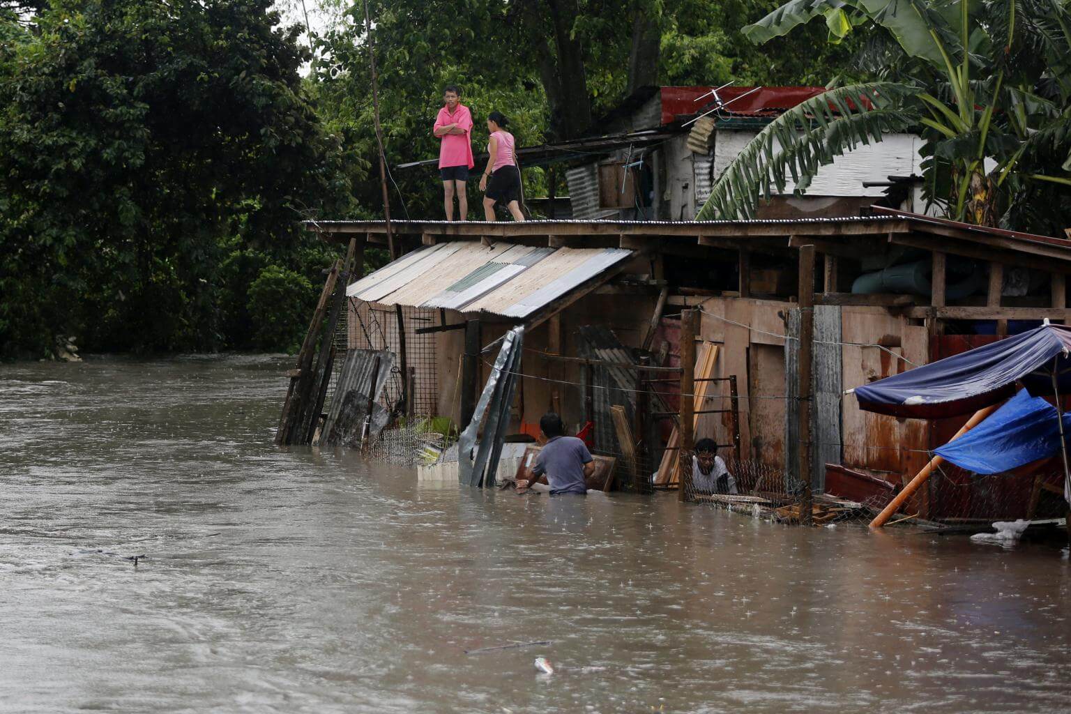 Filipino residents are seen at a flooded community in Bacoor city, Cavite province, Philippines on Sept 12, 2017.
