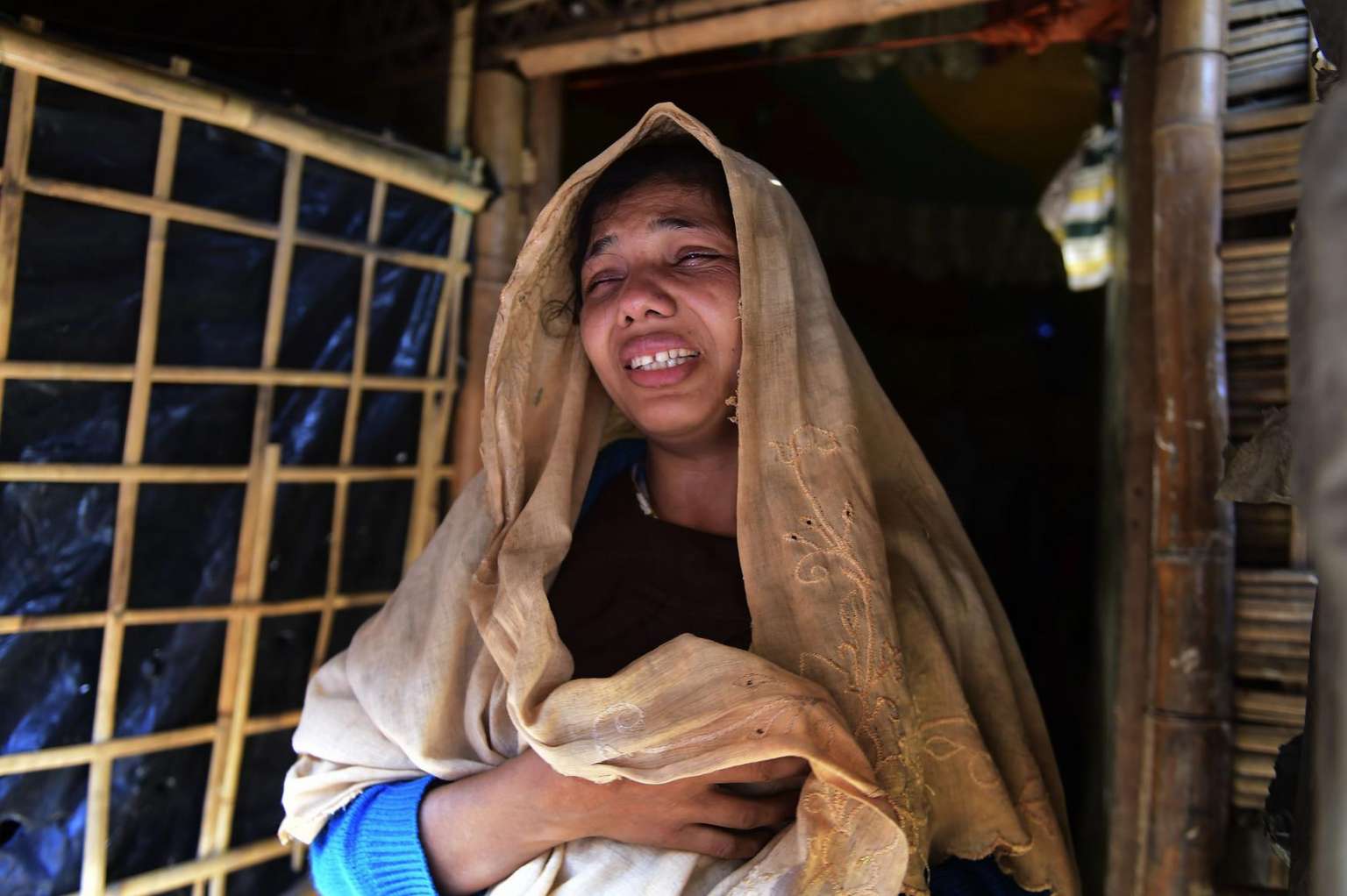 Myanmar Rohingya migrant Nur Begum reacts after the death of her six-month-old son Alam in a refugee camp in Teknaf on Nov 26, 2016.