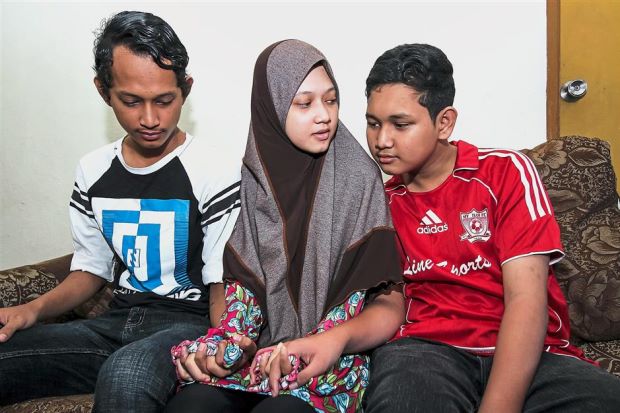 The three siblings (from left) Muhammad Ridzuan, Nur Hidayah and Muhammad Firdaus. Firdaus, 14, was also stricken with dengue.