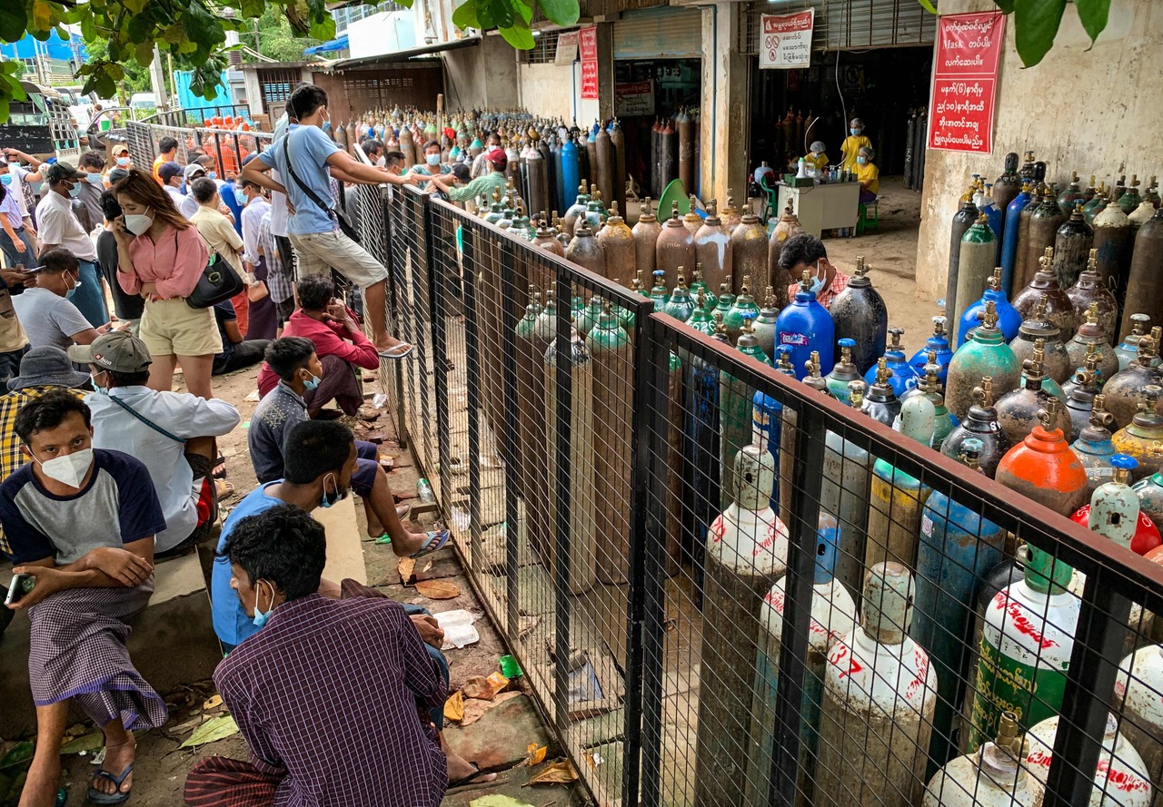 Photographs on social media showed long queues of residents in Myanmar's biggest city Yangon trying to refill oxygen cylinders.